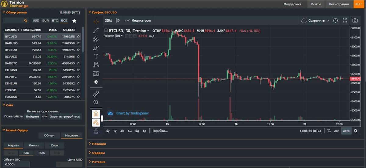 Pertukaran Ternion menawarkan sumber daya yang nyaman, cepat, dan aman bagi klien untuk trading mata uang kripto, yang dihargai oleh trader berpengalaman dan pemula. Komisi rendah, kondisi perdagangan margin yang unik, antarmuka perdagangan yang fungsional, dukungan untuk fiat dan semua mata uang kripto yang populer mendukung perdagangan pada sumber daya ini. Leverage yang menguntungkan, komisi pengambil yang rendah, dan pembayaran kepada pembuat menarik bagi para profesional Ternion yang memiliki pengalaman bekerja di bursa saham dan mata uang. Untuk pedagang baru, pada gilirannya, platform yang sama memberikan banyak peluang untuk perdagangan pertukaran dalam mata uang kripto.
