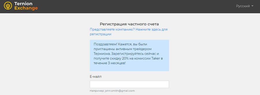 Diskon 20% untuk komisi Taker tersedia saat mendaftar melalui undangan dari pengguna Ternion aktif. Diskon ini berlaku selama 3 bulan sejak pendaftaran akun. Saat ini tidak ada bonus aktif permanen untuk klien, tetapi dari waktu ke waktu bursa mengadakan berbagai promosi: misalnya, pada saat penulisan ulasan ini ada promosi dengan jaminan distribusi berbagai koin (dari 1 EOS hingga 5 BTC) untuk mendorong pengguna aktif.